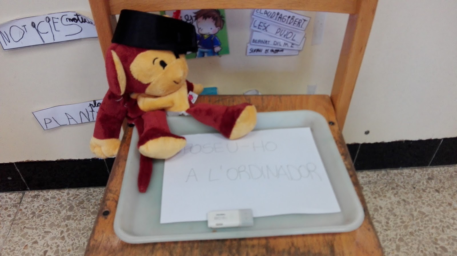 ENS HEM TROBAT EN MONKEY ASSEGUT EN UNA CADIRA, AMB UNA NOTA I UN PENDRIVE: